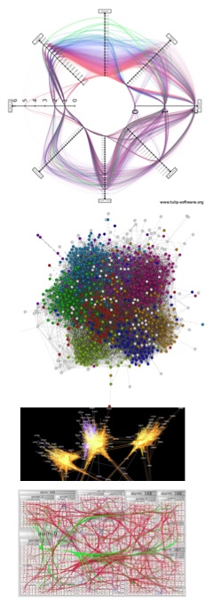 Visualizations aren’t set in stone. Five network visualization developers recently did a cook-off at University College Dublin’s Visual Analysis of Complex Networks workshop, each using his or her own tools to represent a large dataset of college Facebook friendship data.