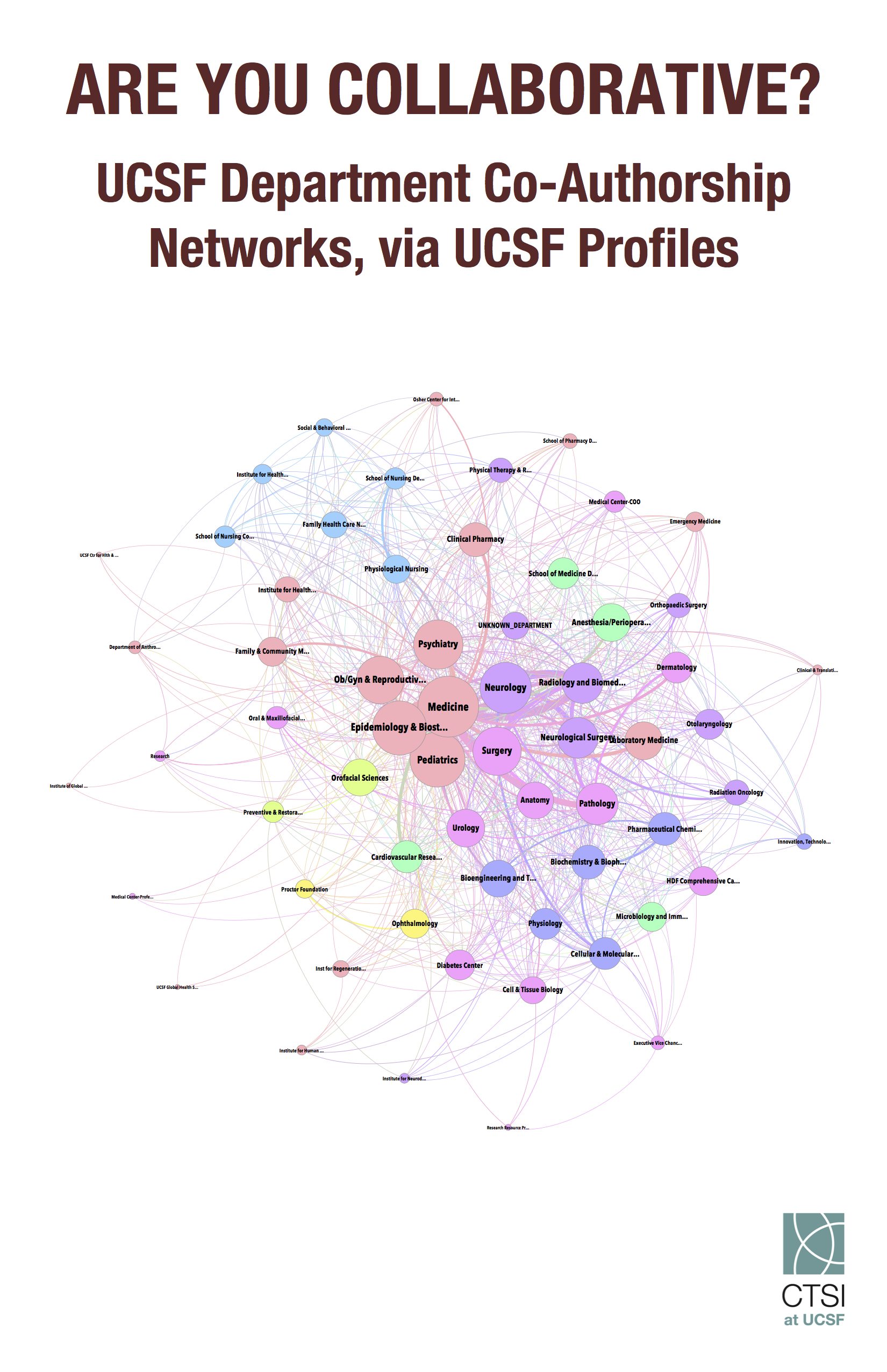 UCSF is spread all across San Francisco, with faculty members’ primary addresses spanning over a dozen zip codes. We know that geographical proximity helps collaboration, but some UCSF researchers are comfortably working with collaborators all across the university, regardless of campus.